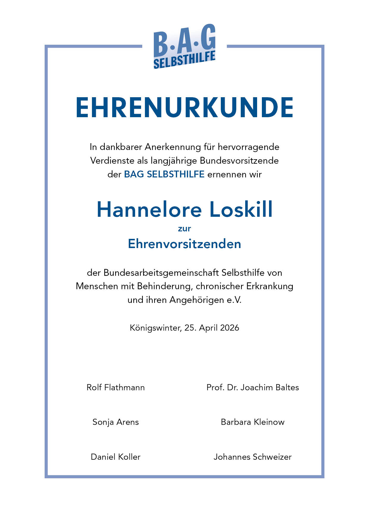 Düsseldorf, 27.4.2026. – Am vergangenen Wochenende hat die Mitgliederversammlung der BAG SELBSTHILFE einen neuen Vorstand gewählt und wichtige richtungsweisende Beschlüsse gefasst.